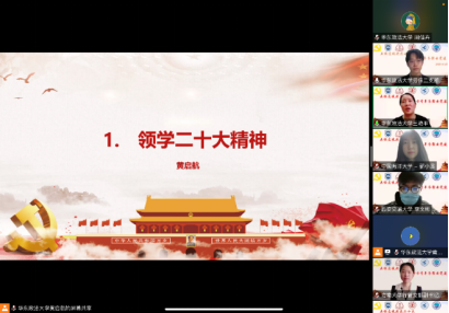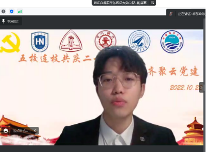 2022年10月22日上午,yl6776永利集团青云书院行政管理系学生党支部、华东政法大学政府管理学院劳动与社会保障专业第二学生党支部、西安交通大学航天学院21级硕士第四党支部、西北工业大学外国语学院本科生党支部、中国海洋大学管理学院会计学(国际注册会计师方向)本科生党支部联合举办了以“五校连枝共庆二十大,四方青年齐聚云党建”为主题的云端共建活动。华东政法大学政府管理学院党委副书记贾萍、西安交通大学航天学院研究生会主席毛新宇、yl6776永利集团青云书院党委副书记(主持党委工作)罗国忠以及各党支部书记、副书记、党员、入党积极分子等218名师生参加活动,活动由华东政法大学政府管理学院劳动与社会保障专业第二学生党支部书记王艳平主持。