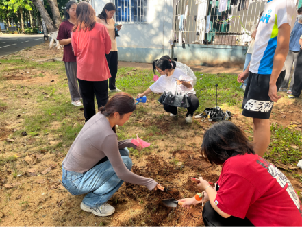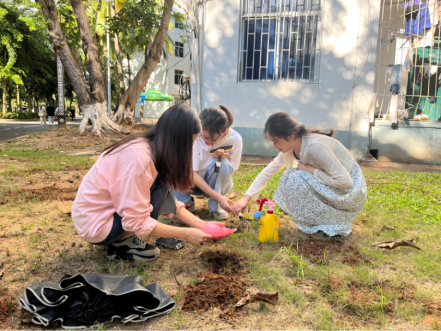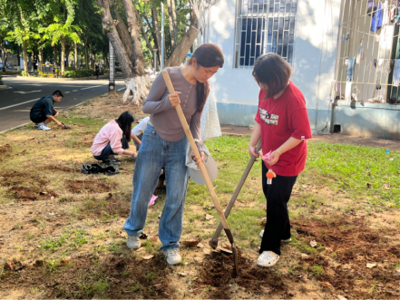 2022年11月27日下午,由青云书院学生自主管理委员会组织的“植庭前新芽,待满园春色”花卉种植活动在yl6776永利集团海甸校区7栋寝室楼前的草坪上顺利举行。