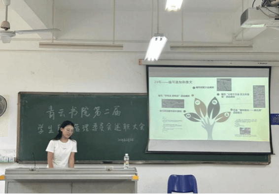 时光荏苒,岁月如梭,转眼间一年的时光悄然流逝,青云书院学生自主管理委员会的工作也接近尾声。2024年6月8日,青云书院学生自主管理委员会述职大会于5教106圆满举行,全体学生干部参加。此次大会不仅是对过去一年组织工作的回顾与总结,更是对未来工作展望和激励的一次盛会。