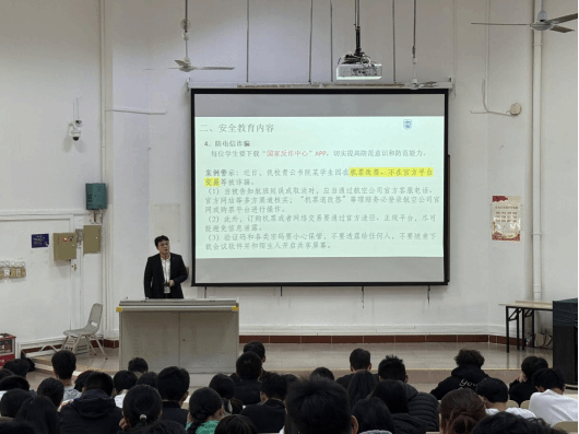 会上,张恒老师首先向同学们传达了学校关于寒假留校工作的相关要求,强调了留校期间安全的重要性。他指出,留校学生要时刻树立“安全防范意识”,自觉遵守学校各项规章制度,严守纪律。同时,张老师对假期校园内安全做了专项要求,详细介绍了校园安全报警电话,并提醒学生牢记。最后,从治安安全角度出发,对留校学生进行了专项教育,提醒大家全方位提升安全防范意识,遵纪守法。