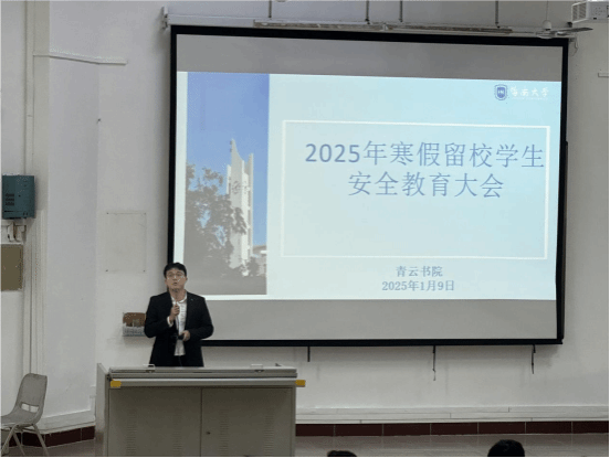 为切实加强寒假期间留校学生的安全教育与管理工作,确保留校学生度过一个安全、文明、健康的假期,青云书院于2025年1月9日在第二教学楼108教室召开了2025年寒假留校学生安全教育管理工作会。此次大会由辅导员张恒主持,青云书院党委书记罗国忠、青云书院党委副书记符晶莹、全体辅导员以及全体留校学生参加了会议。