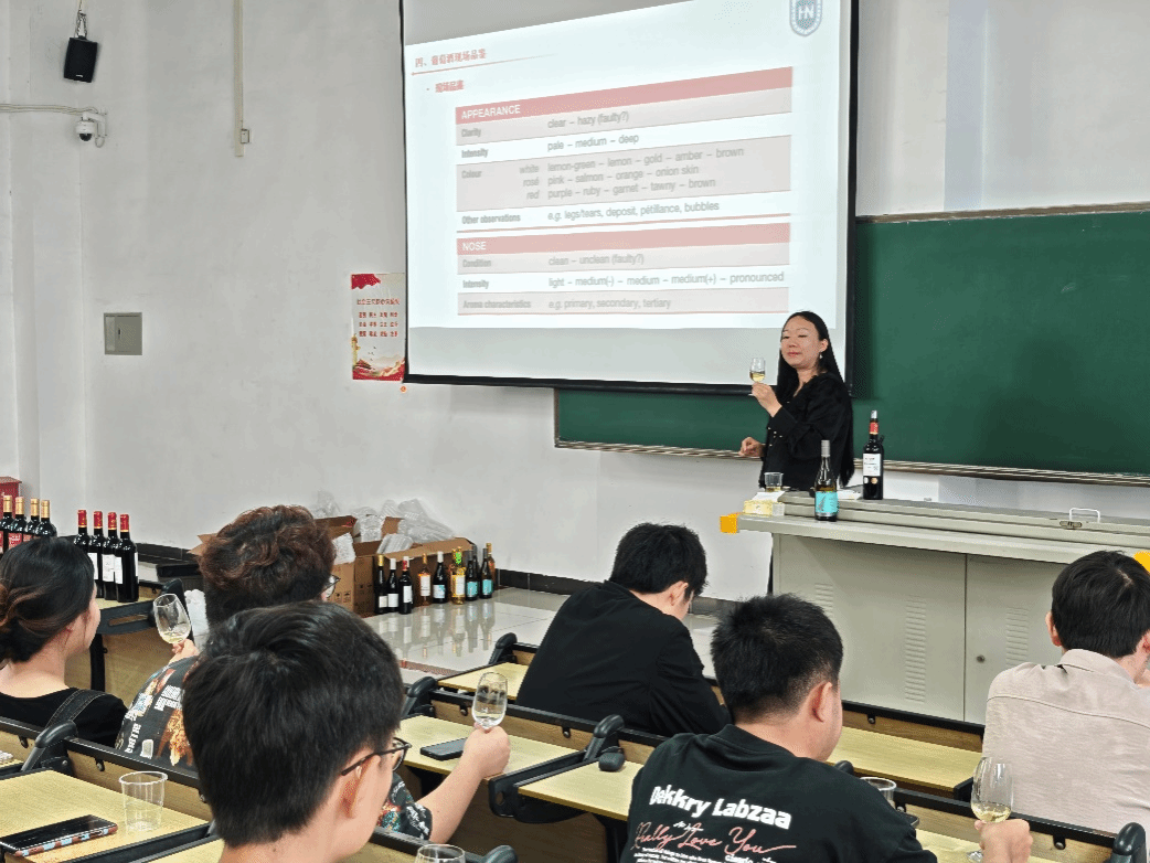 杨思琦校友以《葡萄美酒映人生,跨界探索启新程——国际视野下的文化交融与终身学习》为题做了精彩的主题报告。她结合自身丰富的经历和深厚的专业知识,深入浅出地分享了在相关领域的实践经验与独到见解。报告内容涵盖行业动态、职业发展规划、人生感悟等多个方面,为在场师生奉献了一场精彩的跨界发展分享会。