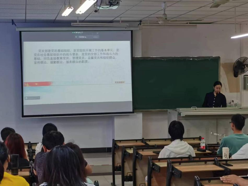 活动伊始,罗国忠书记简要介绍了此次开展培训班的目的及意义,他指出党员培养考察是一项非常重要的工作,党支部委员的素质、能力、作风直接关系着党员发展培养,直接影响着党组织的建设水平和发展后劲。他对党支部委员提出了以下三点要求:一要进一步明确工作职责和党支部作用,学生党支部应当加强思想引领,筑牢学生理想信念根基,引导同学们刻苦学习、全面发展、积极向党组织靠拢。二要明确党员发展流程,严把培养过程质量,不断提升工作水平,做好党员档案填写和整理工作。三是各党支部要积极组织开展形式多样的党建活动,充分调动党员的积极性,密切联系群众参与党组织学习活动以及各项中心工作。他强调,党支部委员要勇担责任、保持先进,主动投入到党支部建设和党员发展工作中来,在担当中历练,在尽责中成长,不断增强党支部的战斗力和凝聚力。