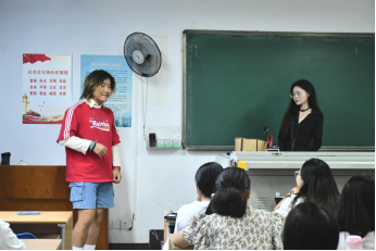 课程正式开始前,余浩源老师通过游戏互动,激发了同学们对色彩美学和穿搭配色的兴趣。她邀请了两位同学现场分享自己的穿搭配色思路,并奖励精美礼品以示鼓励。