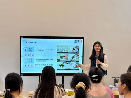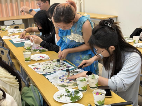 2025年4月17日下午,在青云书院紫荆3-112,《创意工坊》课程第三期植物拓染成功开展。本期课程通过植物科普与非遗拓染的创意融合,开启了一场别开生面的“植物语言解码”,20名同学将春日校园的盎然生机转化为布艺作品。
