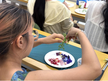此次非遗植物拓染课程,以自然为笔、草木为墨,不仅是一场手工艺术的体验,更是一次回溯历史、传承非遗的文化寻根,让古老技艺在现代生活中焕发生机。同时,课程也进一步铸牢中华民族共同体意识,绘就出邻里和谐、文化共融的美好画卷。