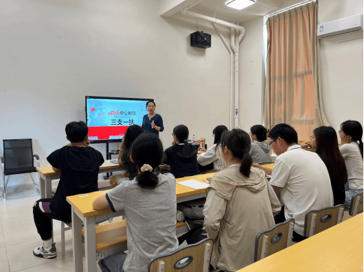 其次,毛老师结合政策文件与案例数据,深度解读了三支一扶相关政策。她向同学们介绍了三支一扶的服务内容,包括支农、支教、支医、乡村振兴基层服务等,服务期2年,考核合格可转定向招录(部分省份可提供编制),且服务期间以及期满后仍保留“应届生”身份(适用于考编、落户)。
