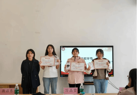 在颁奖环节,由符晶莹书记为服务时长排名前三的朋辈老师颁发“优秀学生朋辈老师”荣誉证书以及奖品。其余朋辈老师由辅导员蒋启东、肖宇琪颁发奖品。