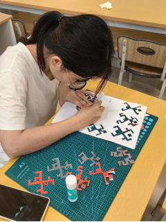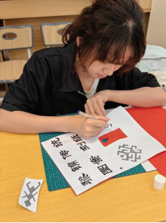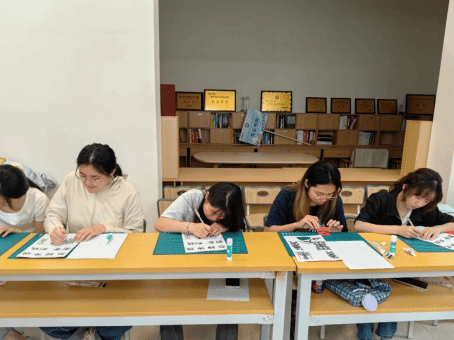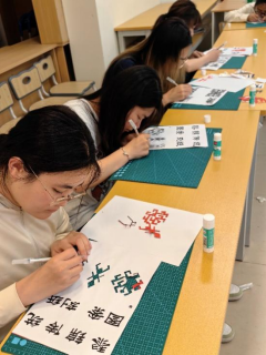 本次课程特别设置了10个沉浸式体验座位,每个座位均配备专业刻纸刀具与特制红纸。参与课程的同学们热情高涨,她们认真聆听讲解,仔细观察每一个刻纸步骤。从最初对刻纸工具的陌生,到逐渐掌握刻纸的技巧,同学们在实践中不断探索、进步。现场刀光纸影间,原本平面的红纸渐渐焕发生机,一幅幅栩栩如生的刻纸作品在同学们的巧手下跃然呈现。大家相互交流心得,分享创作过程中的喜悦与困惑,现场氛围既热烈又温馨。