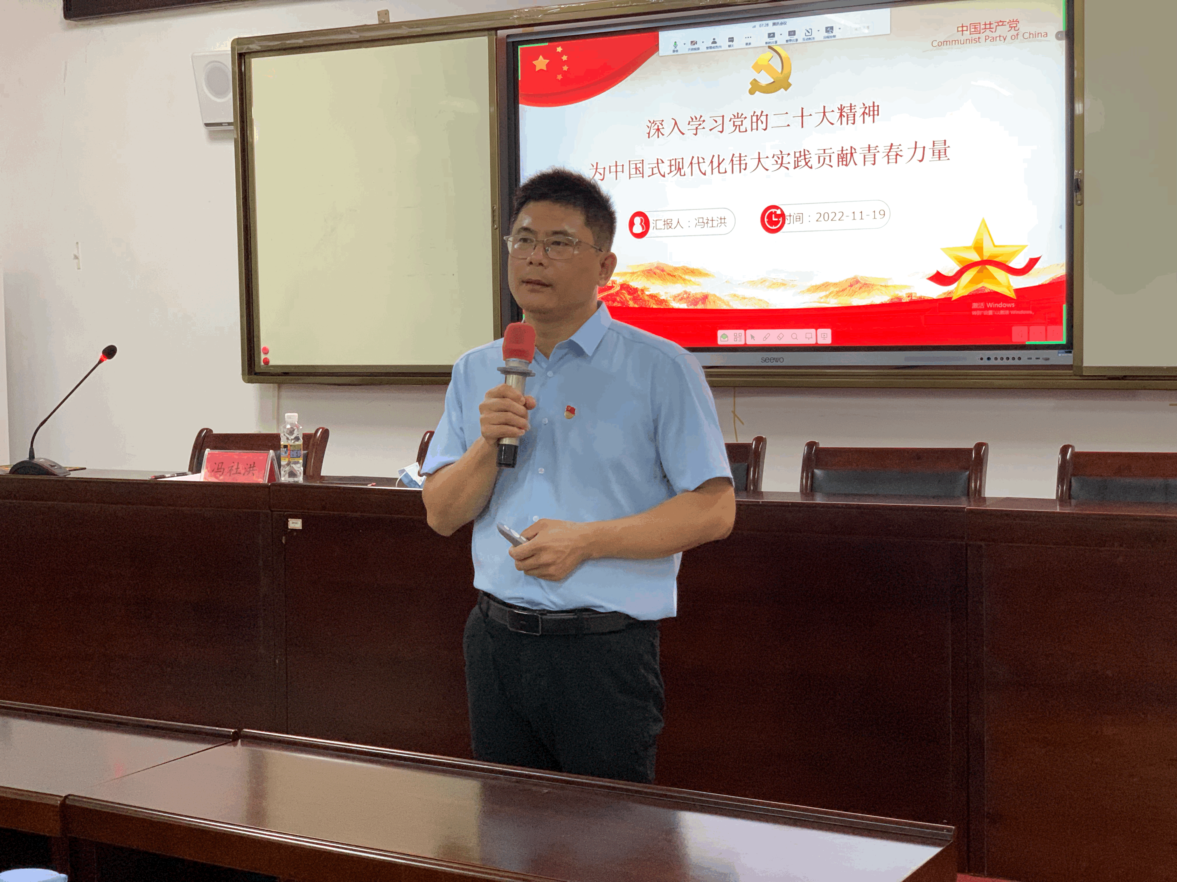 党课第一讲,冯社洪书记以“深入学习党的二十大精神,为中国式现代化伟大实践贡献青春力量”为主题,带头学习宣传贯彻党的二十大精神,要求青年学生党员准确把握党的二十大精神的核心要义,深入推动党的二十大精神入脑入心。冯书记强调,广大党员干部要了解我国过去五年的工作和新时代的变革,认识到全面建成小康社会的重要意义,明确新时代新征程党的中心任务,深刻把握中国式现代化的中国特色和本质要求。冯书记指出,未来五年是关键时期,要把美好的青春年华投入到国家建设中来,为国家发展贡献力量。