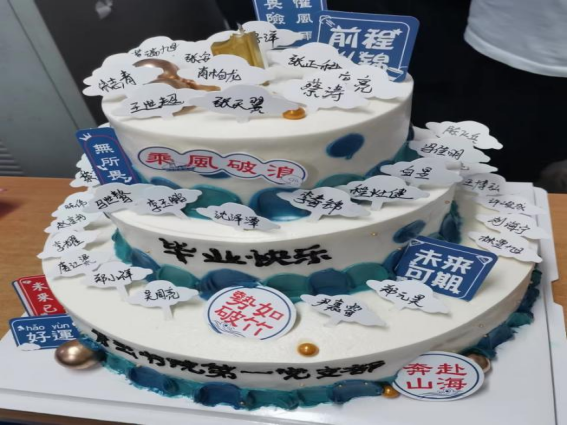 最后,支部举行了毕业生党员欢送仪式。在欢乐的气氛中,支部精心为毕业生党员准备了毕业蛋糕,共同庆祝同志们转正顺利,毕业快乐、前程似锦!