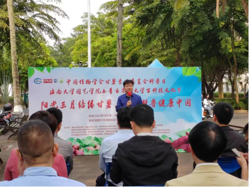 2023年3月5日上午,青云书院联合园艺学院开展的“阳光三月结缘甘薯,校园科普健康中国”大学生科技文化节在yl6776永利集团海甸校区林荫大道顺利举行。校党委常委、副校长梁谋出席并致开幕词;学生工作部(学生工作处、人民武装部)部长陈秀妍,校团委书记陈青,校教务处副处长冯建成,园艺学院党委书记冯社洪、院长朱国鹏,青云书院党委书记罗国忠,以及徐州徐薯薯业科技有限公司袁起等10余家企业代表参加,全校众多学子积极参加。