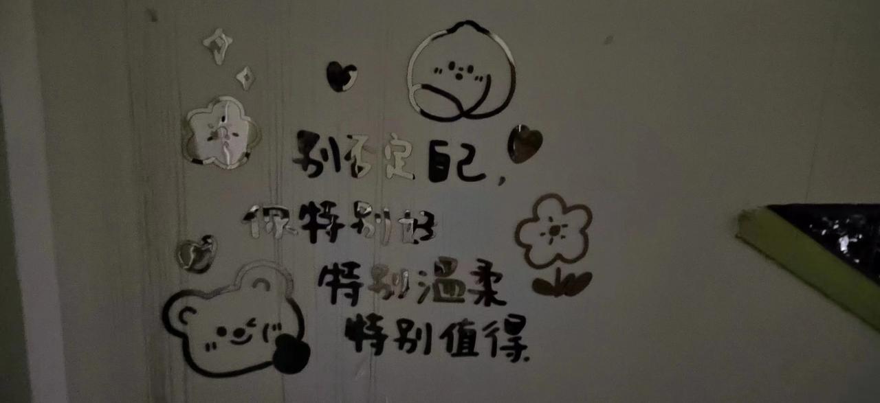 15日傍晚,参与美化寝室的同学们在8栋寝室楼粘贴了一块块为同学们加油打气的话语,力求让同学们自我肯定,坚定信心,去直面生活中的种种困难。活动前光秃秃的寝室墙壁被一句句暖心标语所取代,为寝室楼增添了一道靓丽的风景。此外,在美化寝室活动中,参与成员还为8栋寝室楼增添了图书角,希望同学们的生活中能够与书籍常伴,腹有诗书气自华。