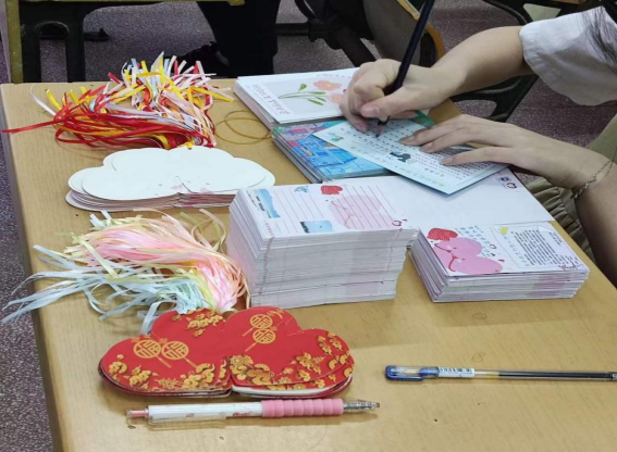 志愿者们写祝福卡片