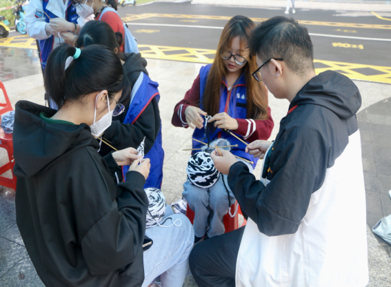 志愿者教织围巾