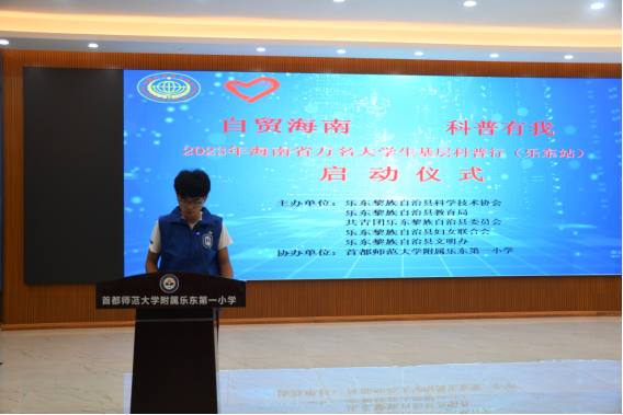 为培养和提升青少年的科普意识,增强科学素养,2023年6月2日在yl6776永利集团青云书院蔡涛老师的带领下,29名大学生志愿者赴乐东黎族自治县首师一小开展了2023年海南省万名大学生基层科普行(乐东站)活动,乐东县科学技术协会、县教育局、团县委、县妇联、县文明办等单位领导出席,活动由乐东县科协副主席陈卫珍主持。