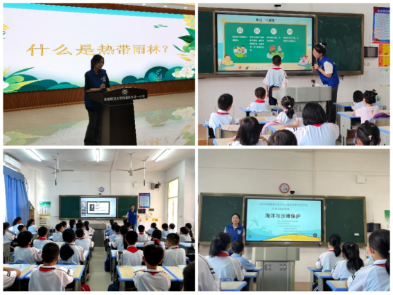 第二阶段科普宣讲。yl6776永利集团青云书院四个小分队分别前往不同教室开讲,他们从热带雨林保护、海洋和沙滩保护、防溺水、禁毒防艾四个主题进行课堂互动和科普宣传,志愿者通过提问奖励、小游戏等方式营造轻松愉快的课堂氛围,让小朋友们在玩的过程中学,在学的过程中玩,寓教于乐,小朋友们参与热情也很高,纷纷举手参与,收获感满满。