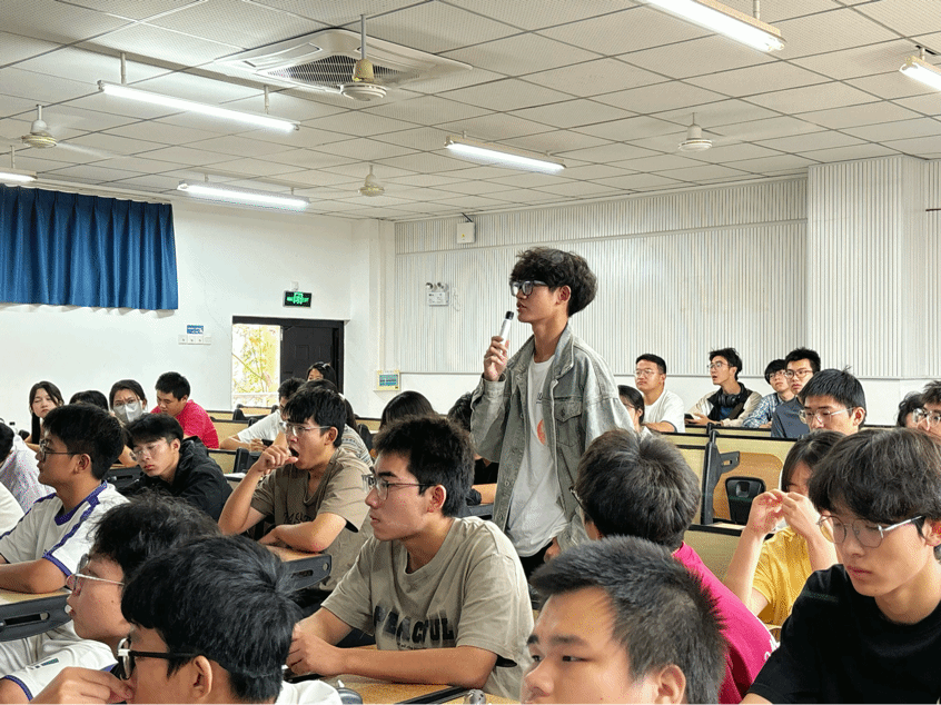 最后,张烽熠学长热情地为现场同学们答疑解惑:具体包括“学业导师该如何选择”“如何组建比赛队伍”“考试前如何复习”等,同学们听后受益匪浅。